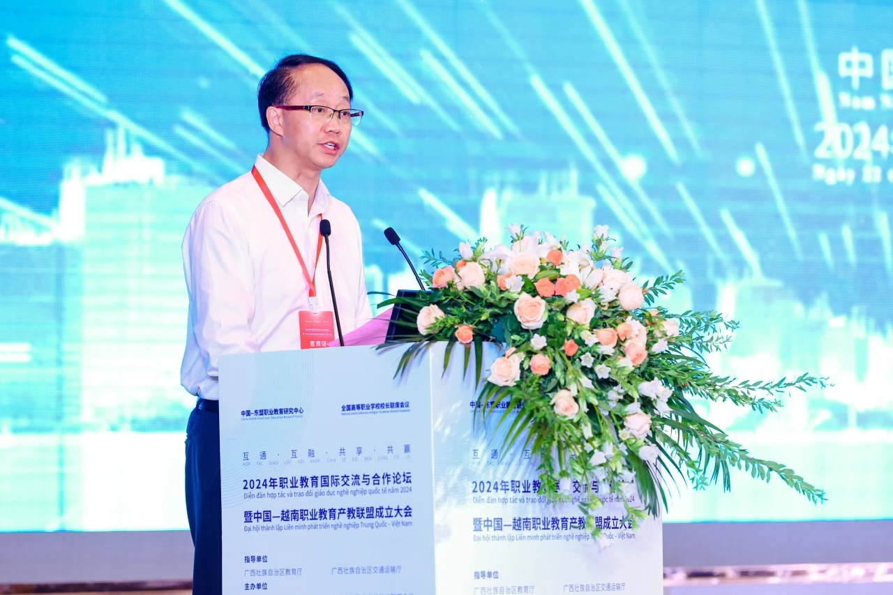 (党委宣传部  讯 )5月22日,2024年职业教育国际交流与合作论坛暨中国-越南职业教育产教联盟成立大会在南宁召开。大会由中国-东盟职业教育研究中心、全国高等职业学校校长联席会议主办,广西交通职业技术学院、中国-东盟交通职业教育联盟承办。