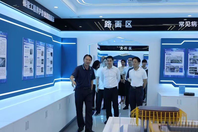 会前,顾荏朝一行参观了学校路桥教学工场、汽车实训楼、城市轨道交通运营管理实训中心、交通科普基地。