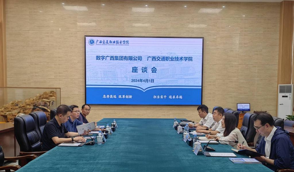 座谈会上,陈正振副校长简要介绍了学校办学基本情况以及近年来取得的办学成绩。他指出,学校高度重视校企合作、产教融合,近年来学校大力推进数字化校园建设,坚持数字技术与教育教学深度融合,数字广西集团有限公司是自治区数字经济产业的龙头,希望通过此次座谈交流,进一步加强双方的联系沟通,在学校数字化校园建设、专业建设、人才培养、科技服务等方面开展深入的合作。