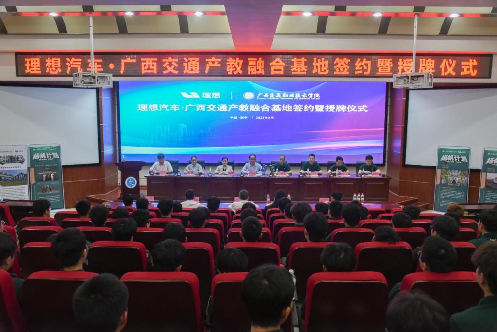 3月22日上午,理想汽车·广西交通产教融合基地签约暨授牌仪式在我校昆仑校区隆重举行。