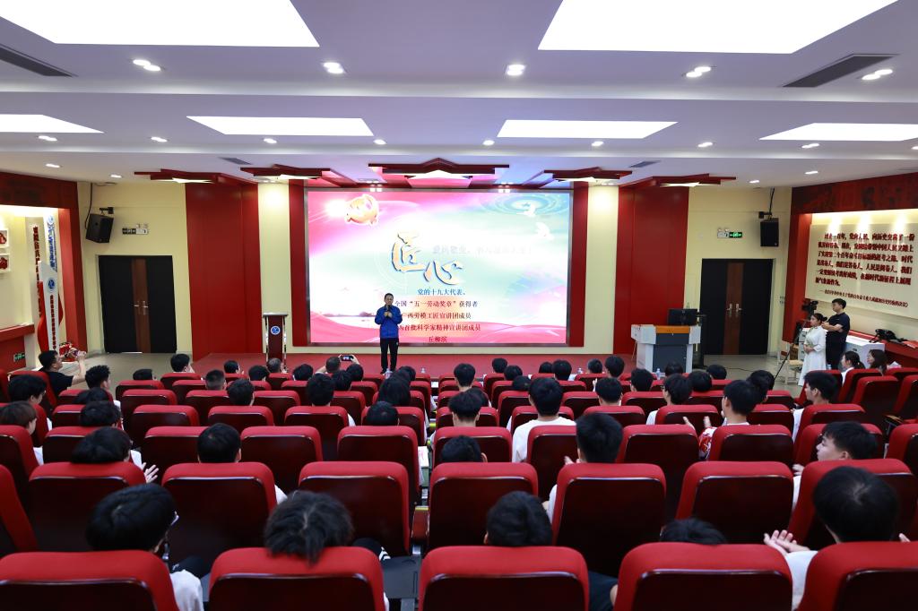 大国工匠主题巡讲环节,“全国技术能手”丘柳滨和2022年“大国工匠年度人物”郑志明分别作了精彩报告,线上线下近万名师生聆听了两位大师的精彩分享。丘柳滨大师通过生动案例诠释了敬业、精益、专注、创新的工匠精神,他朴实的话语赢得阵阵掌声。郑志明大师以《匠心筑梦 技能报国》为题讲述了自己从普通钳工成长为大国工匠的奋斗历程、技术工人的职业追求,勉励同学们用匠心去追求、去面对每一个零件和每一个技术的创新。互动环节中,学生们就职业发展、技能提升等方面积极提问,现场气氛热烈。