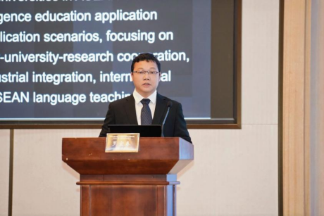 学校教务处处长罗宜春分享的“‘校校企企四方协同’AI赋能中国—东盟现代工匠学院建设”方案,以“政产学研”深度融合为核心,引发跨境院校与企业代表的热烈共鸣。
