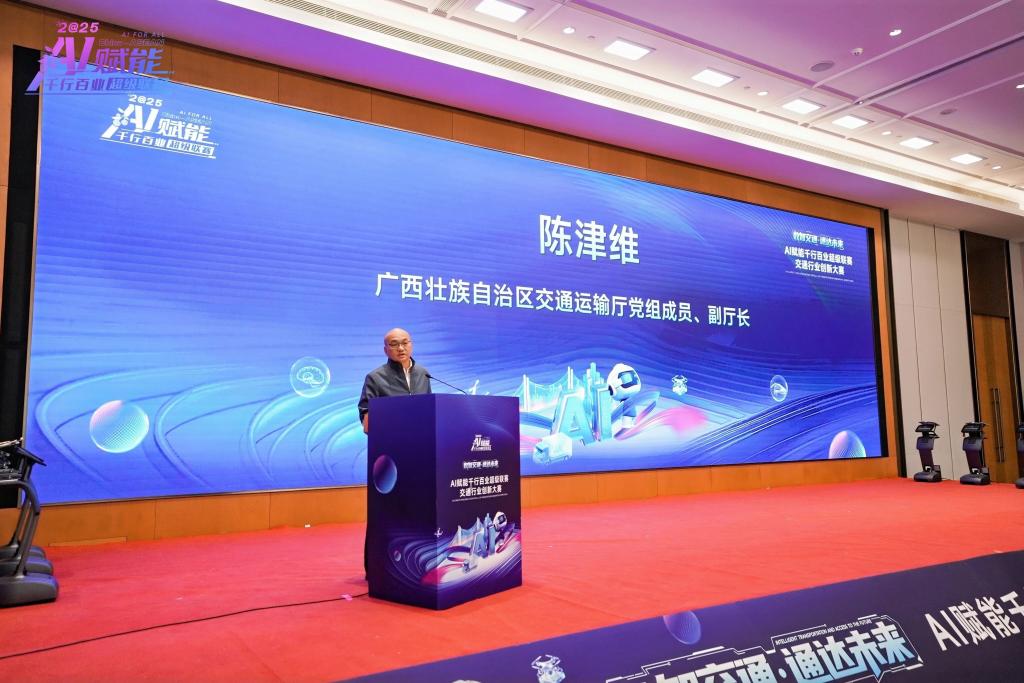 自治区交通运输厅副厅长陈津维出席闭幕式并致辞。他指出,大赛坚持“以赛促研、以赛促用”模式,不仅推动了交通科技与产业的深度融合,实现高校前沿技术与企业落地需求的精准对接,更搭建了国内创新力量与东盟智慧交融的桥梁,高校参赛项目的出色表现,充分彰显了广西交通科技创新的潜力。