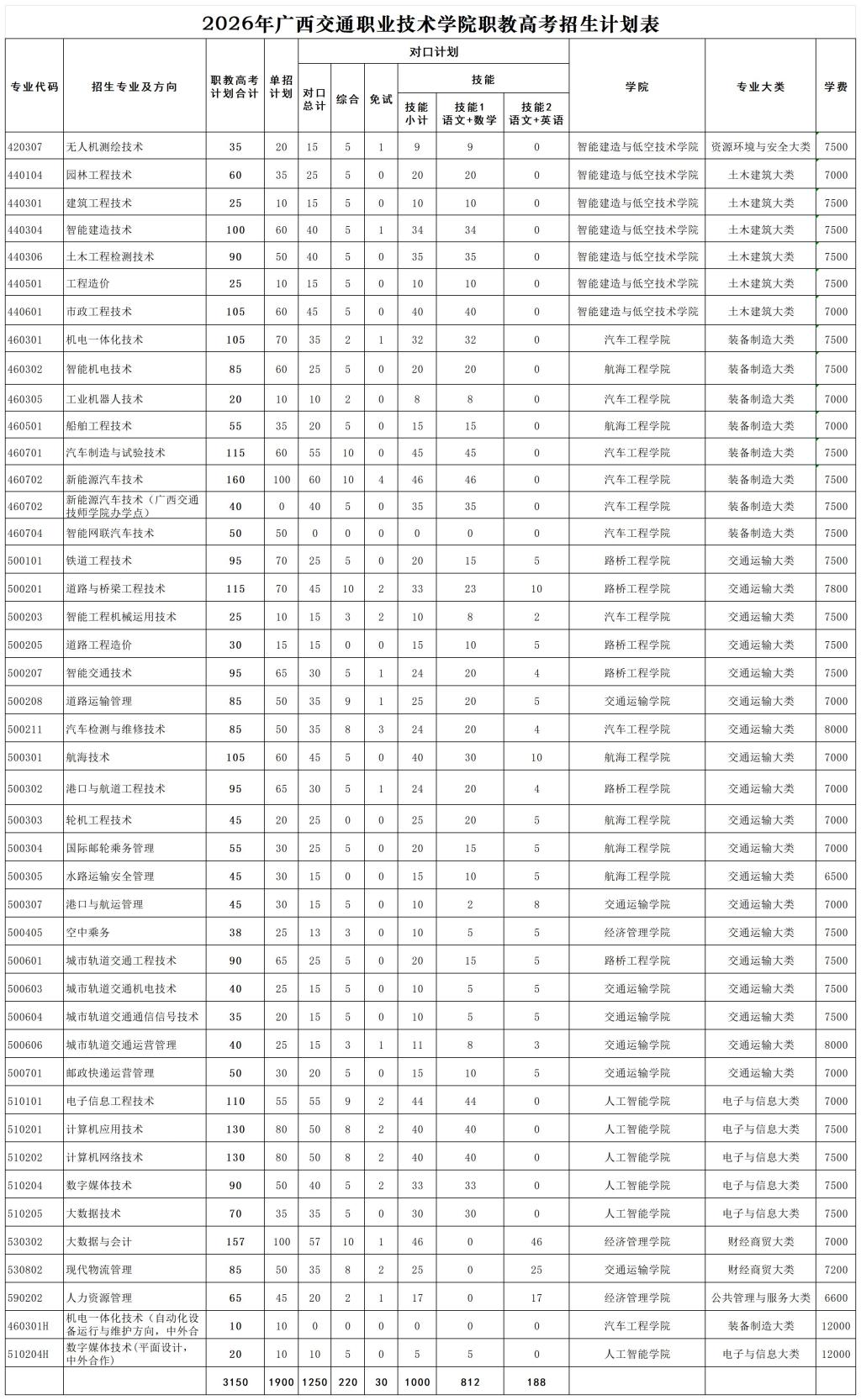 广西交通职业技术学院(学院代码:12356)坐落于广西壮族自治区首府南宁市。学校隶属于广西壮族自治区交通运输厅,是广西唯一一所培养交通运输专门人才的高等学校。