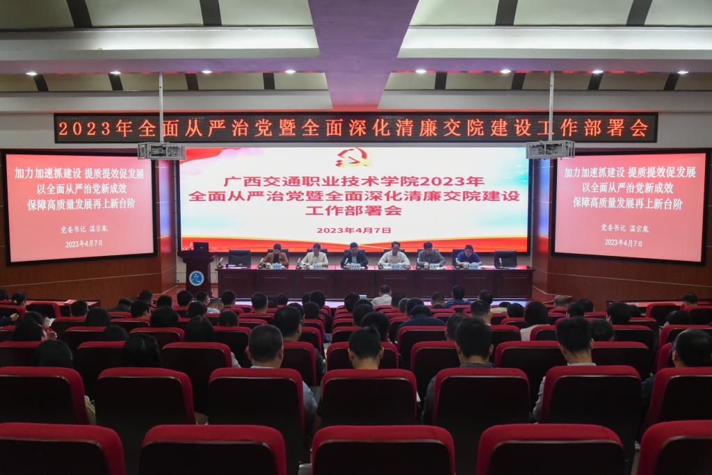 4月7日上午,学校在昆仑校区C1会议室召开2023年全面从严治党工作暨全面深化清廉学校建设工作部署会,学校党委书记温宗胤传达学习上级有关全面从严治党工作精神,回顾总结学校 2022 年全面从严治党和清廉交院建设工作,对 2023 年重点工作进行部署,学校党委副书记、校长李文勇主持会议。